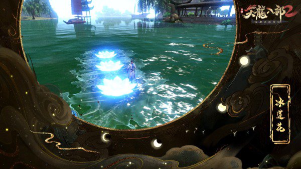 冰特點絕學:冰蓮花冰特點的絕學就更加有意思了~除了植被會被冰凍變成白色之外,當在水面上運用冰特點絕學時,水面還會被凍住,少俠們乃至能夠站在冰面上行走!