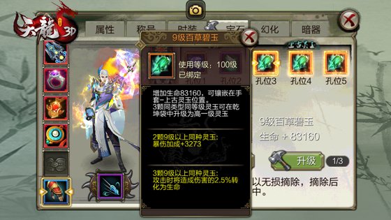 可以供給暴傷加成,3顆以上增再額定添加壹個:攻擊時將形成傷害的2.5%轉化為生命,不同種類靈玉激活特點也各不相同,更多挑選和特點搭配的可能性。