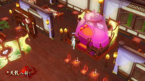 浪漫的帷幔纱帐……女侠的闺房,偏粉红的配色,随处可见的心形装修,迎风摇摆的各色纱幔,透出浓浓的少女心。坐在桌案后面,沏上一壶茶香茗,静静的读一本书,怡然自得。 【互动文娱,家宴初体验】